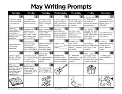 June writing prompts (great outdoors & camping). 20 writing prompts for june with corresponding writing. Look around and take note of what you hear, . Sunday monday tuesday wednesday thursday friday saturday. Fun and interactive writing prompts in a variety of .
